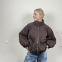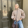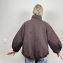 Deze korte puffer jas, in het taupe en bruin, is perfect voor de frisse voorjaarsdagen.