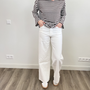 De klassieke denim jeans in het off white is altijd goed en fijn om te dragen. De broek zit hoog in de taille en de wijde pijp zorgt voor een mooie pasvorm die comfortabel zit!